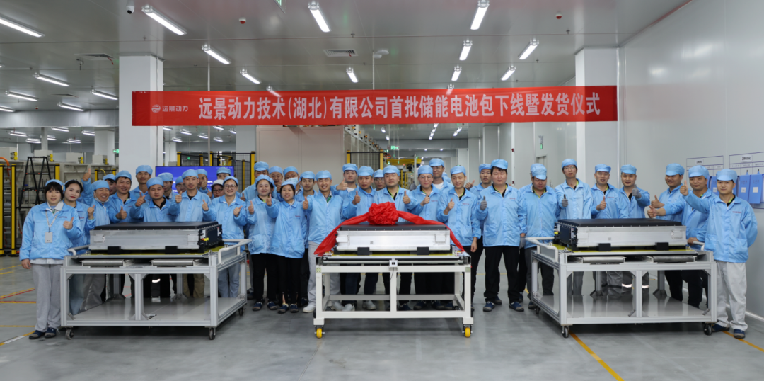 远景零碳智能电池产业园首批储能电池包下线发货。
