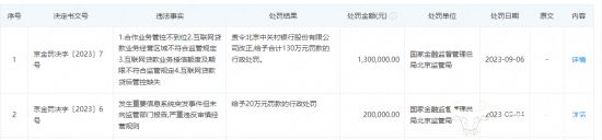 具体来看,9月4日,该行因“发生重要信息系统突发事件但未向监管部门报告,严重违反审慎经营规则”被北京监管局罚款20万元。两天后,又因“合作业务管控不到位、互联网贷款业务经营区域不符合监管规定、互联网贷款业务授信额度及期限不符合监管规定、互联网贷款贷后管控缺失”等多项违法事实被责令改正,并处以130万元罚款。