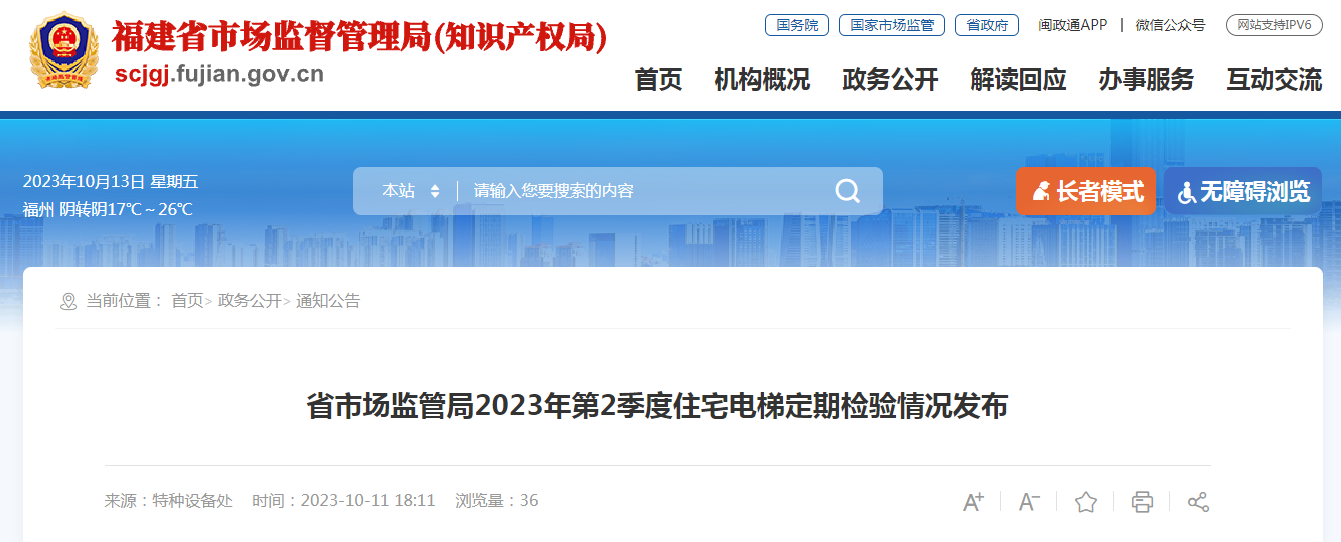 2023年第2季度福建省定期检验不合格住宅电梯清单