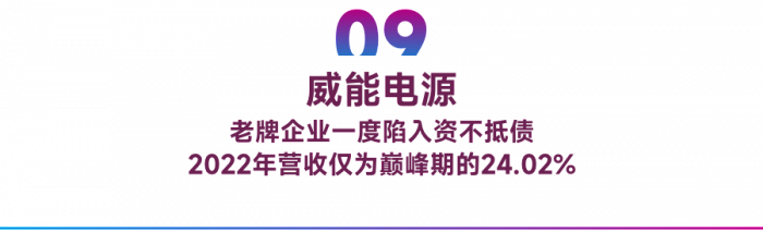 直到2022年威能电源才完成资产重整,但其当年(2022年)营业收入仅为0.72亿元,仅为巅峰期的24.02%。而截至2022年末,威能电源账面货币资金仅为1319万元。