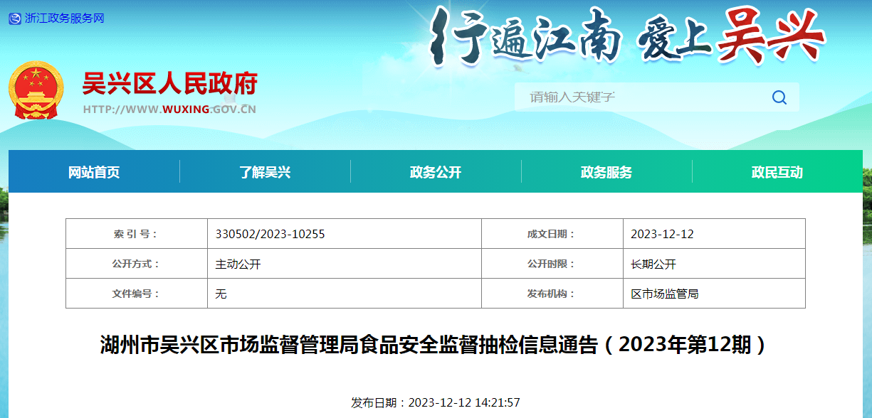 湖州市吴兴区市场监督管理局食品安全监督抽检信息通告(2023年第12期)
