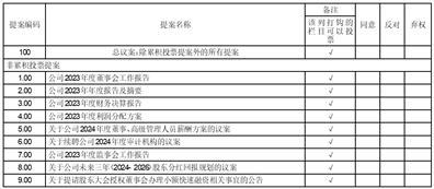 对于非累积投票提案,填报表决意见:同意、反对、弃权。