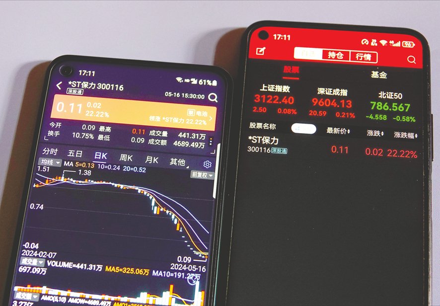 此前,在经历连续 9 个“20CM”的跌停后,*ST保力5月15日以0.09元/股的价格报收,这也是A股历史上首次有个股的收盘价低于0.1元。不过在5月16日,*ST保力强势涨停,报收于0.11元/股,涨幅为22.22%。