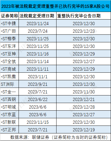 记者梳理发现,今年以来,仅有*ST金科一家上市公司的重整申请获得了法院受理。而根据前述联储证券的报告,2023年共有16家上市公司的重整申请被法院裁定受理。