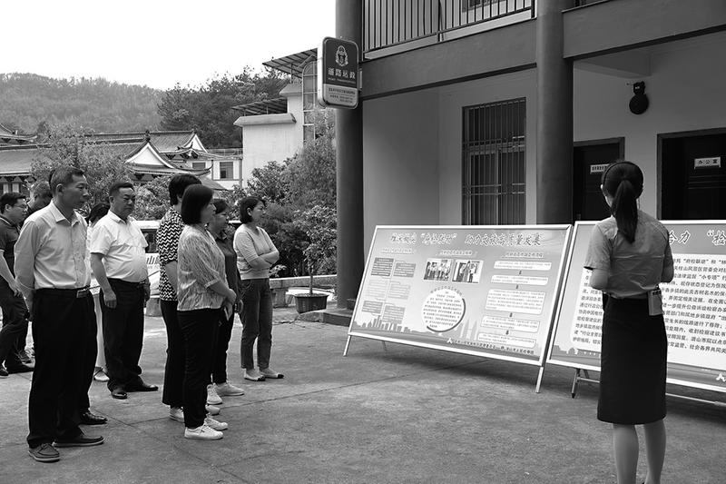 代表、委员们在潜山市检察院驻天柱山管委会检察官工作站视察“检察护旅”工作。