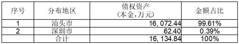 本资产包总金额16,864.34万元,包含债权2户,涉及本金16,134.84万元,利息729.50万元(包内债权金额的计算基准日为2024年9月20日),分布在广东省的汕头市、深圳市2个地区。