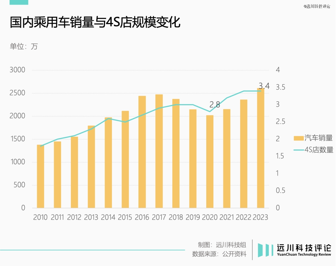 按照中国汽车流通协会的统计,2020至2023年,国内有8000多家4S店退网,年均退网量超2600家。今年上半年,退网的4S店逼近2000家。