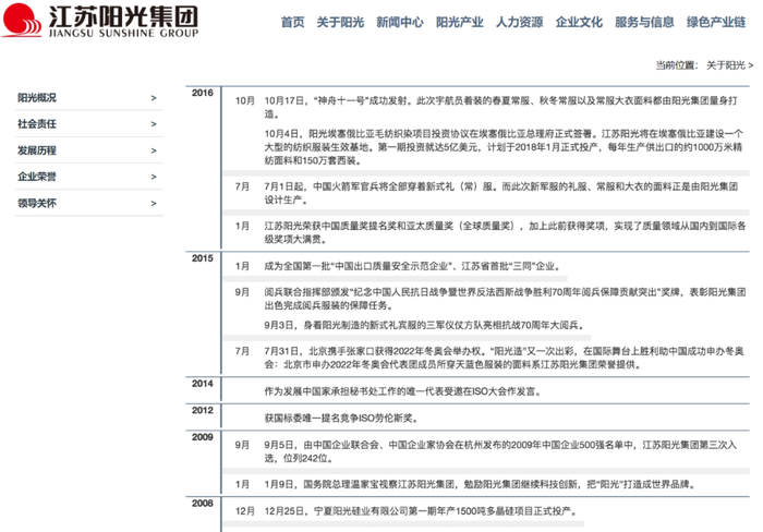 在江苏阳光公司官网上,发展历程定格在了2016年后就再无更新。相关新闻,也基本停留在2020年。但4年过去了,市场早已经不再是那个市场,跟不上市场需求变化的企业终将被淘汰。