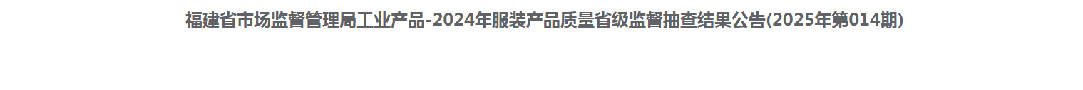 福建省休闲服装产品质量省级监督抽查结果(不合格)