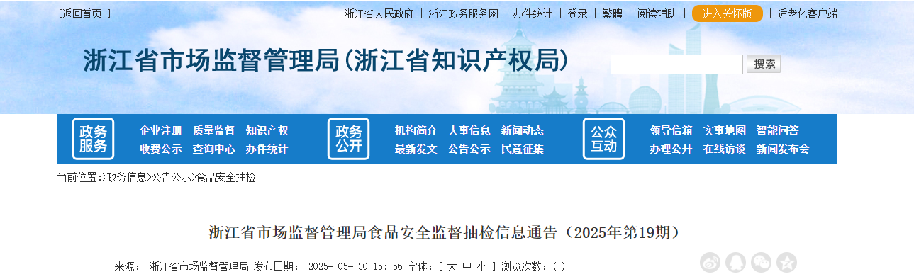 对抽检中发现的不合格产品,我局已责成相关市级市场监管部门依法予以查处。要求杭州、宁波、温州、金华、衢州、台州等地市场监管部门督促食品生产企业查清产品流向、召回不合格产品、分析原因进行整改;要求杭州、宁波、温州、金华、衢州、台州等地市场监管部门督促食品经营环节有关单位立即采取下架等措施控制风险。以上市级市场监管部门自通告发布之日3个月内向浙江省市场监督管理局报告核查处置情况并向社会公布。特此通告。
