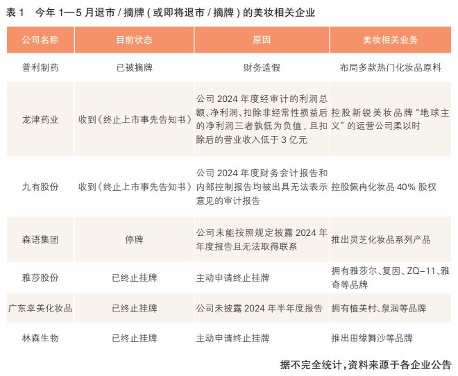 今年1—5月,多家美妆相关企业从A股退市或从新三板摘牌——