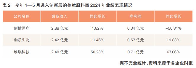 一批企业被资本清退或主动退出的同时,不少企业也在加速入场。创健医疗、珈凯生物、维琪科技等美妆原料商均于近期进入创新层。
