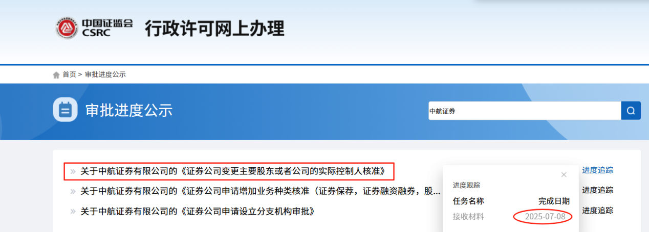 财联社7月10日讯(记者高艳云)近日,证监会行政许可网上办理平台显示,中航证券变更主要股东或者公司实控人的申请,已于7月8日获得受理。