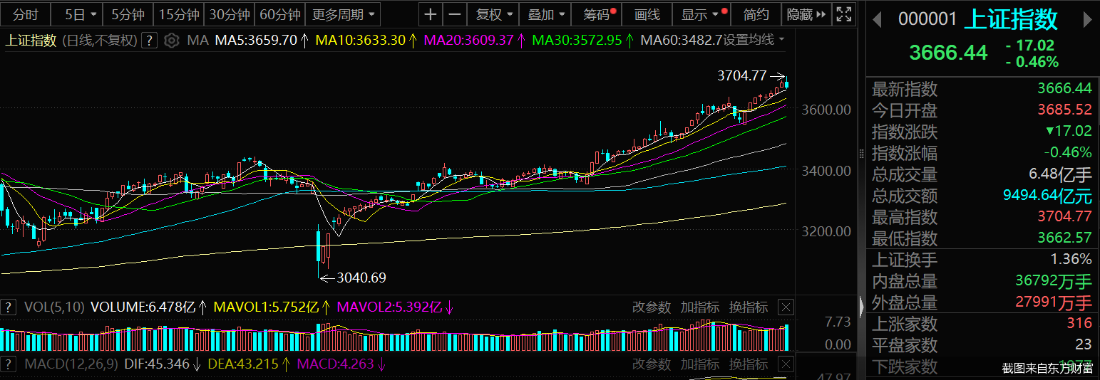8月14日,A股冲高回落,上证综指早盘一度站上3700点,续刷近四年新高,不过当日最终收跌0.46%,报3666.44点。盘中指数不断上探,市场交投氛围也持续火爆,两市全天成交金额再破2万亿元,达2.28万亿元,创年内新高。
