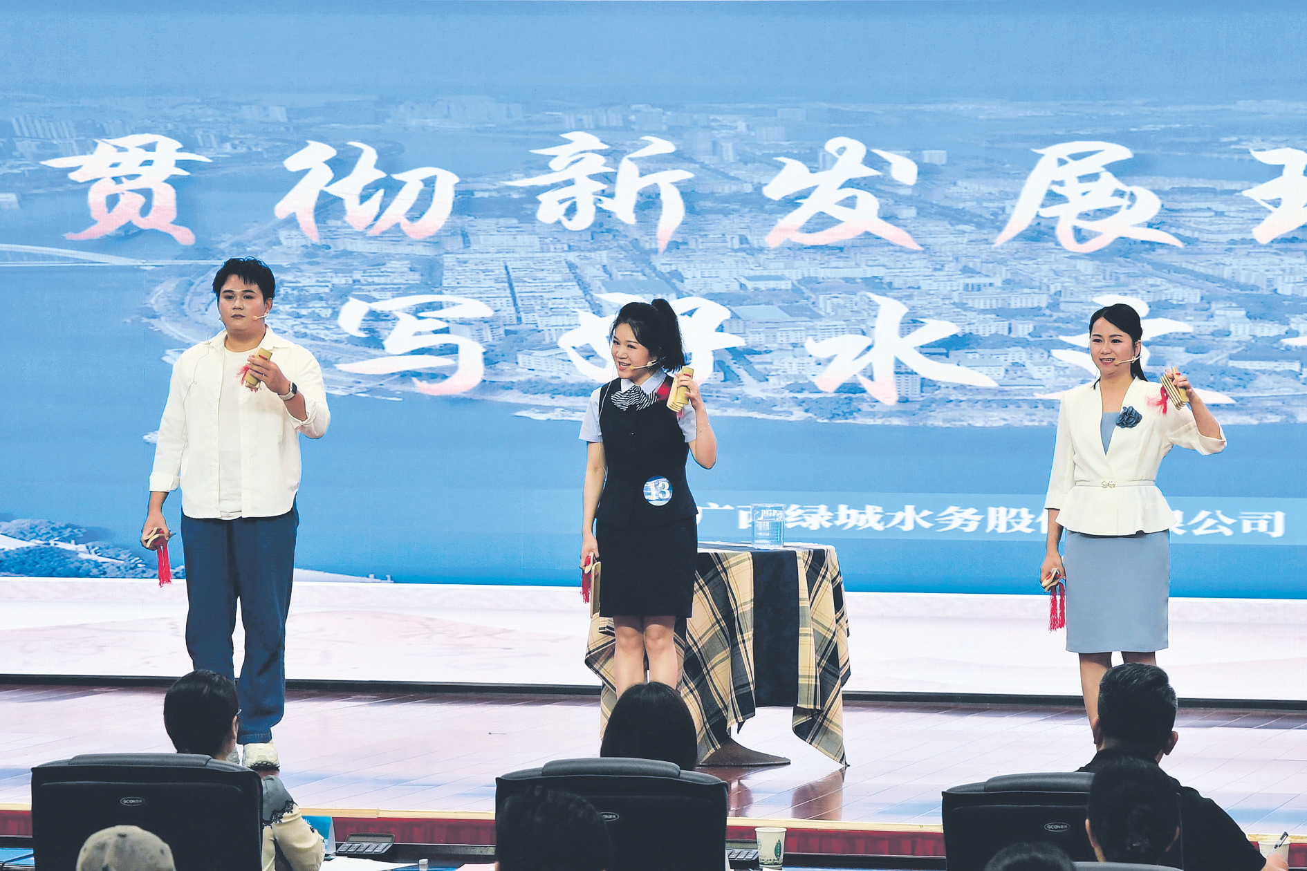 “光靠水质净化厂处理污水是远远不够的,从源头上减少污水产生更为重要。希望每一个市民都能珍惜生活中的每一滴水,从身边做起,一起守护我们的家园。”在南宁市生态环境局主办的“我是美丽中国讲解员”南宁赛区决赛现场,绿城水务参赛选手以“新闻播报+情景剧”的创新形式,将复杂的污水处理知识转化为生动有趣、通俗易懂的讲解内容,赢得评委们的肯定,获得比赛一等奖。这种寓教于乐的科普方式,既提升了公众的环保意识,也展现了绿城水务在生态文明宣传教育方面的创新实践。
