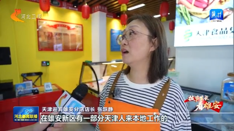 天津迎宾雄安分店店长 张跃静:在雄安新区有一部分天津人来本地工作的,非常认可我们这品牌,我们是2到3天我们供一次货,冷链4到5个小时到达,要保证老百姓在雄安新区能吃到天津老味儿的火腿肠。