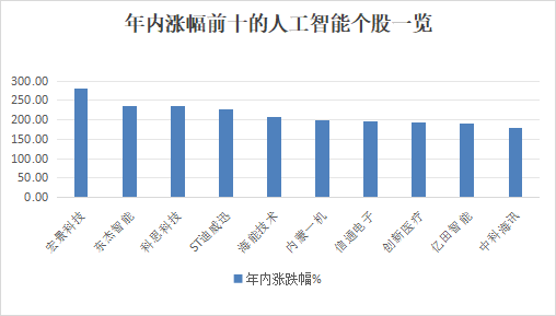 据新华财经统计,今年以来,649只人工智能概念股中,超九成概念股的股价录得上涨,其中,宏景科技、东杰智能、科思科技、ST迪威迅、海能技术年内涨幅均超200%。共38只个股年内涨幅超过100%。
