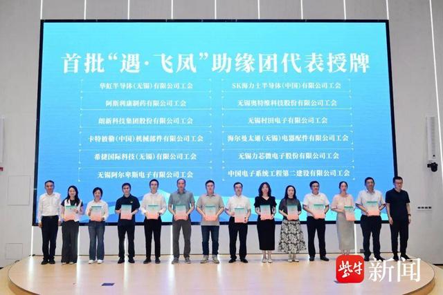 华虹半导体、SK海力士、阿斯利康、奥特维、朗新科技集团、村田电子、卡特彼勒、海尔曼太通、希捷科技、力芯微、阿尔卑斯电子、中电二等区内12家重点企业获得首批“遇·飞凤”助缘团授牌,他们会把平台活动纳入企业福利包,让青年在企业有归属感,在人才“家”有幸福感。