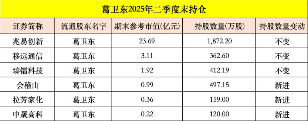 随着A股上市公司2025年半年报披露完毕,私募大佬葛卫东的最新动向浮出水面。
