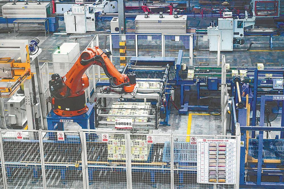 福建盼盼食品集团5G智慧工厂的饮料产品自动包装生产线新华社