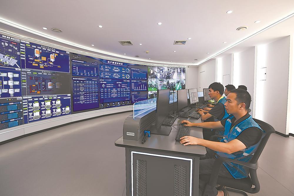 漳州青蛙王子集团技术人员在可视数据监控中心监控数据。 新华社