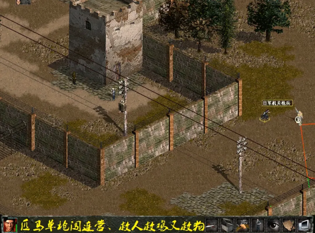 由此不难发现,以《血狮:保卫中国》为代表,20世纪末至21世纪初,国产电子游戏产业出现了这样一种商业路径——模仿成熟的游戏玩法,并在宣传中加入挑起对抗意识的话语内容,这样即使游戏质量本身不过关,也可以通过消费特定玩家群体的情绪而获取不菲的收入。根据现有资料,可以认为最早由中国生产的以抗日战争为主题的电子游戏是外星科技公司开发的FC游戏《地道战》(1996),该游戏故事显然来自电影《地道战》。游戏玩法属于“动作角色扮演游戏”(ARPG),玩家扮演民兵队长高传宝,在多个场景中以不同武器与日军作战。在游戏通关之后,会出现“侵略者睁开你们的眼看看,这就是人民的力量”的宣传语。对此,《电子游戏软件》杂志评价道:“游戏还参照电影《地道战》的情节安排了一些物品,也可以由玩家自行运用,玩起来玩家肯定会说:嘿,过瘾!”这种引用经典抗战叙事,以相对原始的“影游融合”方式为玩家提供抗日战争背景下的游戏快感的创作框架,成为此后近20年间抗战游戏的主要范式。继FC游戏《地道战》之后,中国最早的PC抗战游戏也很快出现,即《抗日:地雷战》(1998,以下简称《地雷战》),该游戏的诞生与游戏行业的“光荣四君子”事件密切相关。