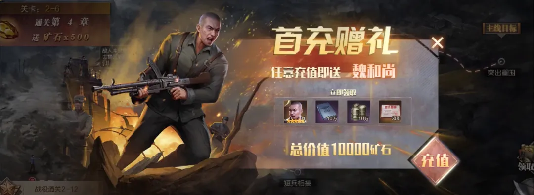 2007年,由中青宝公司开发的网络游戏《抗战Online》开始运营。2009年,同样由中青宝公司开发的、以知名抗日影视剧《亮剑》改编而来的网络游戏《亮剑Online》也开始运营。这两款游戏虽然是迄今为止为数不多的以抗日战争为主题的网络游戏,但是制作水平很差。不同于早期国产抗战游戏因技术与硬件限制而不得不将游戏故事与玩法进行精简的状况,21世纪初期,国产游戏产业已经有了一定的技术与资本积累。当时国际上的第二次世界大战题材游戏都尽可能地采用第一人称射击(FPS)、第三人称射击(TPS)或战略模拟(SLG)等更有利于还原历史现场的玩法。而中青宝的两款游戏选择的则是当时在网络游戏市场上十分具有人气的、类似《传奇》的大型多人在线(MMO)网游模式,且游戏内存在大量“课金”(通过内购获取游戏数值)选项。在游戏玩法上,则是以网络游戏传统的“打怪—升级—提升装备”为框架,抗日战争主题在这两款网络游戏中被彻底背景化。以《亮剑Online》为例,在安装该游戏时,安装程序会以“国难当头,匹夫有责。优秀的中华儿女,纷纷毅然亮剑,奔赴抗日战场”的话语并辅之以《亮剑》角色李云龙的图片来渲染类似于早期抗战游戏的跨媒介叙事风格。但正式进入游戏之后,迎面而来的则是登录领取提高金钱与经验获取率的免费“VIP印记一周”的提示,完成新手任务则可以领取“哈雷WLA-S型军用摩托”,游戏的“付费商城”中大量提升角色强度的道具皆需要以现实金钱购买,其中不乏“易筋经残卷”等完全超乎抗日战争题材的特殊道具,下线时游戏甚至会提醒玩家未完成“钓鱼岛海战”“靖国神社日常”等“日常活动”。显然,此类游戏彻底抛弃了以历史游戏形式来表现抗日战争的叙事特征,也并不是《抗日——血战上海滩》在对历史的虚构中通过游戏过程本身为玩家提供某种情绪快感,而是完全利用了网络游戏时代游戏资本主义式的免费游戏的基本框架:玩家处在一个被游戏运营方掌控的二元市场中,被传唤(interpeller)为可疑的游戏主体,指向消费崇拜与被剥削的游戏“玩工”(playbour)。这类作品不但将抗战主题、民族情感和爱国情怀作为噱头,还精心构建了一个玩家想获得这种情绪快感就要受到剥削的经济体系。如果想要在游戏中成为强的玩家,始终保持“胜利”,那就要继续认可游戏公司所提供的消费逻辑,消费高价的付费道具,还要作为游戏玩工不断重复被游戏公司所掌控的游戏劳动——唯有如此才能迎来“玩家的胜利”。