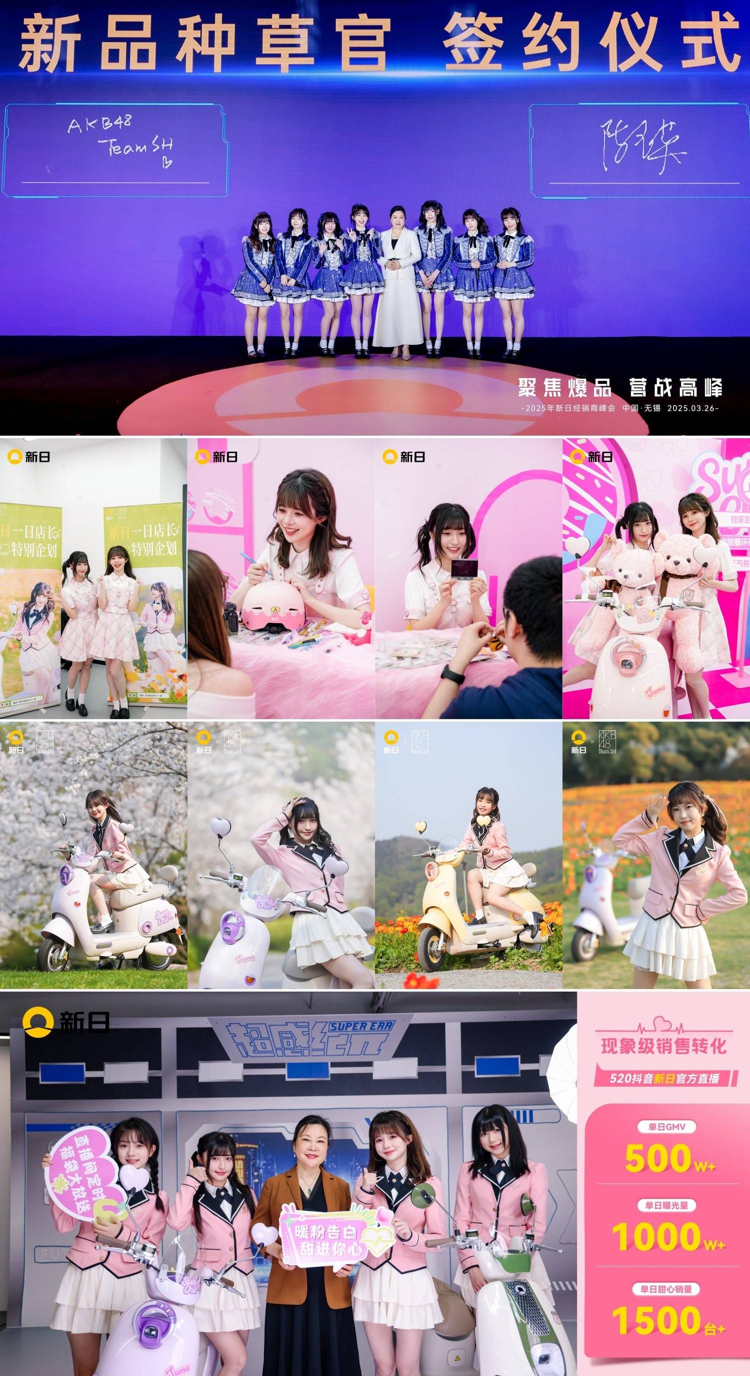 此外,新日还与国民女团AKB48 Team SH牵手合作,打破固有“明星代言”模式,以“新品种草官”身份深度绑定新品甜心,并通过“一日店长x粉丝握手会”“夏日联合MV”入场粉丝经济,拉动门店销量同比增长300%。同时,成员入驻本地生活直播间,与新日高级董事携手开启“520掌门人直播”,送上节日祝福和购车福利,带动直播间单场GMV达500万+。不仅圈定了年轻用户人群,也加速了新日品牌年轻化的进程。