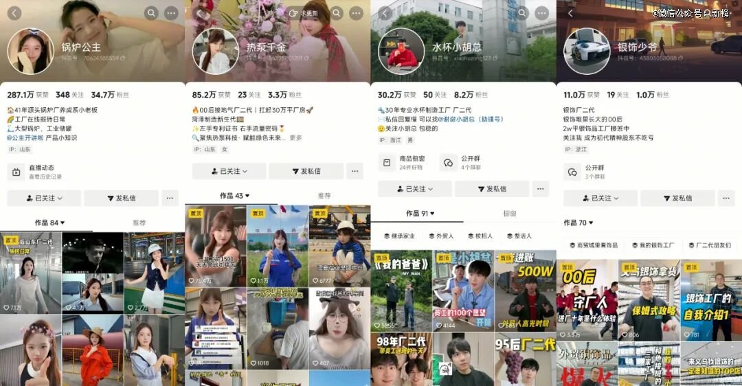 不错的曝光,可观的转化,让不少二代相信,一个成功的社交账号会是他们接班路上的重要助手。以抖音为例,据新榜旗下抖音数据工具新抖统计,搜索关键词“二代”,有超过5000个相关账号,搜索关键词“厂二代”,至少有1413个相关账号。