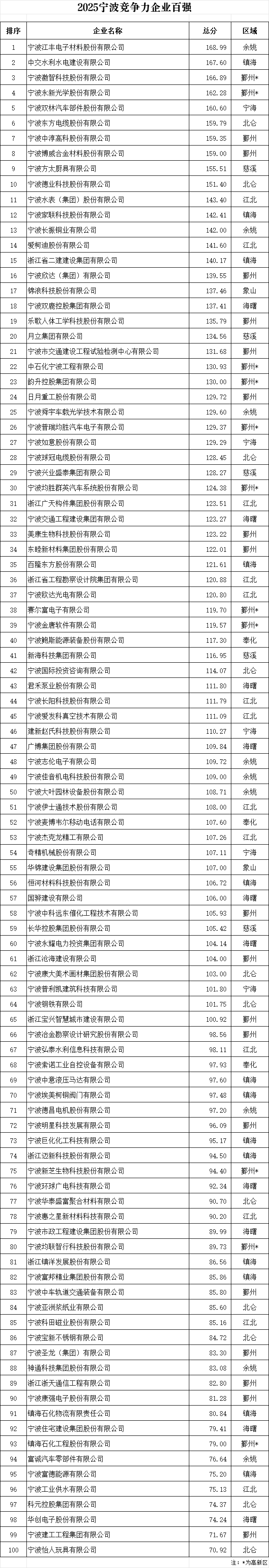 竞争力百强榜单揭示了宁波企业的“创新基因”。这份依据14项指标加权评出的榜单,更像是一份宁波企业的“创新力排行榜”。