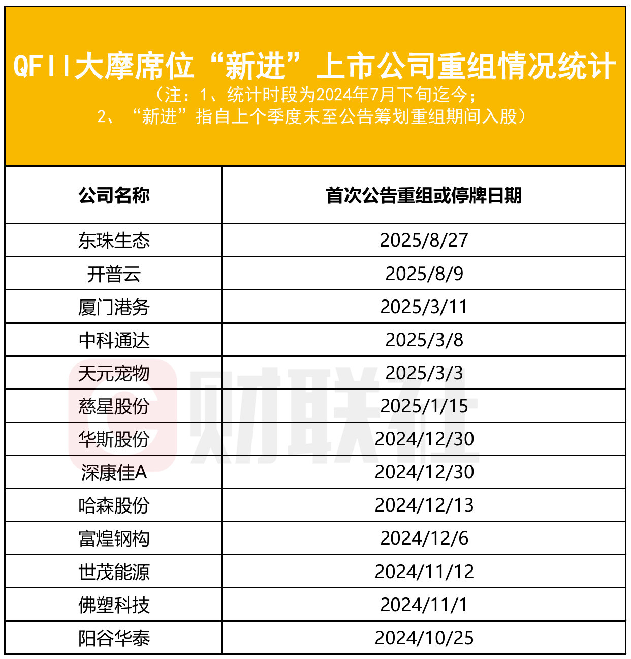 以厦门港务(000905.SZ)为例,公司因筹划重组在2025年3月11日起停牌,摩根士丹利出现在3月10日披露的前十大股东名单中,持股占比0.35%;3月17日晚间,厦门港务公告了重组方案,并于3月18日开市起复牌。在3月31日公司的十大股东名单中,已经没有了摩根士丹利的身影。