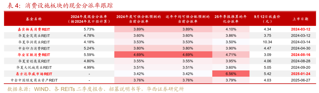 根据华夏凯德商业REIT的招募说明书中披露的可供分配金额测算,华夏凯德商业REIT的2025年年化和2026年预测现金流分派率(预计年度可供分配金额/公募基金拟募集规模)分别为4.40%和4.53%,目前与华安百联消费REIT相当。作为首单外资消费REIT项目,发起人及运营管理机构凯德投资是亚太地区最大的REITs管理人和领先的消费资产运营商,值得关注。