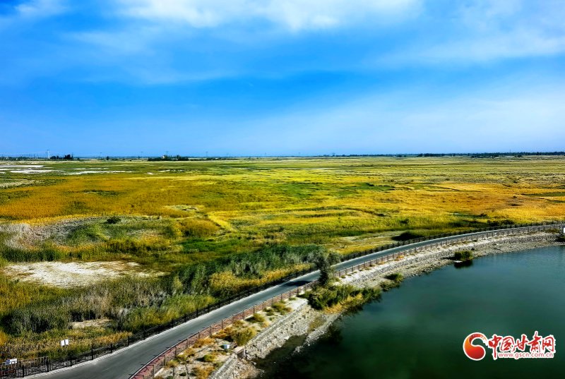 当戈壁滩上的绿色不断延伸,一幅天蓝、地绿、水清的生态画卷正在徐徐展开。
