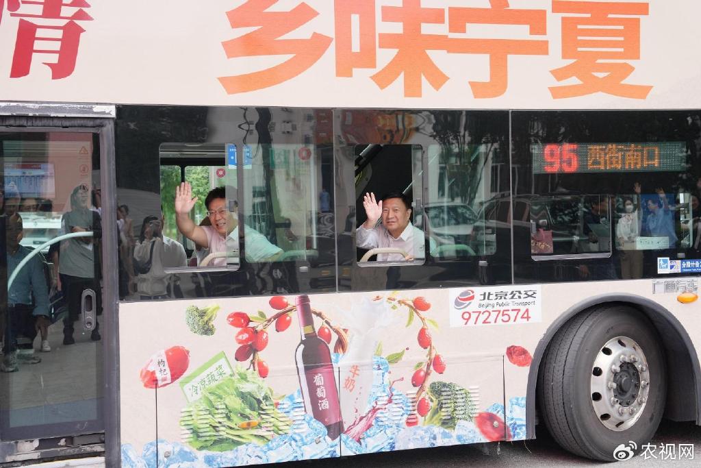 仪式结束后,嘉宾们移步至演播厅外,在一辆印有“乡味宁夏”主题形象的双层巴士公交前合影留念,并登车体验首发行程。本次活动所选定的95路公交线路,贯穿北京东北至东四环,途经全国农业展览馆、农业相关政府部门、高端社区与商圈,精准覆盖农业类媒体与高品质农产品消费人群,让宁夏 “六特” 农产品的品牌印记深度融入京城。