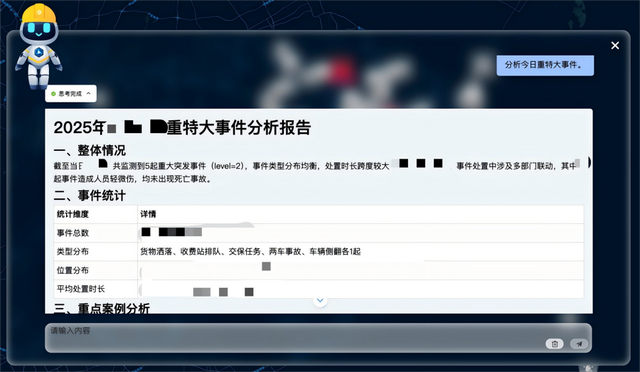 应急指挥智能体全面覆盖事前预防、事中处置、事后评估三大环节,构建城市应急管理的智慧闭环。系统能够在事前提早预警,精准掌握人、车、物等应急资源;事中实时识别5公里范围内救援力量,动态优化处置路线;事后自动生成评估报告,对各环节响应效率进行智能评分。这一闭环管理使得城市应急从传统的“被动抢险”根本性转向“主动防御”,大幅提升城市韧性和安全水平。
