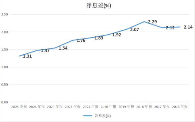 纵向来看,2025年上半年,北京银行的净息差从2024年末的1.47%降至1.31%,自2018年开始净息差持续下滑。