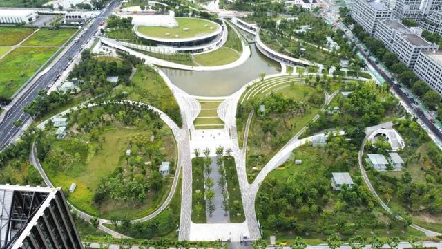 漫步草坪,目之所及皆成风景:李子园智创大厦见证从“赤脚李子园”到“亿元楼”的奋斗历程;桃浦湾TOP ONE商业综合体以多元业态吸引年轻消费群体,为园区注入蓬勃朝气。拔地而起的建筑群,正在勾勒出这片城区未来的天际线。