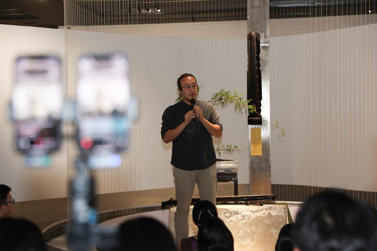 隋意扬融会传统琴派之法度,注重指法与气息的融合,音色沉静幽远,意境高古清微。他的琴声在论坛结束后响起,每奏一曲,皆先释其意,通过曲前讲解,他引领观众深入曲意内核,以故事唤醒听觉,文化赋能琴音。