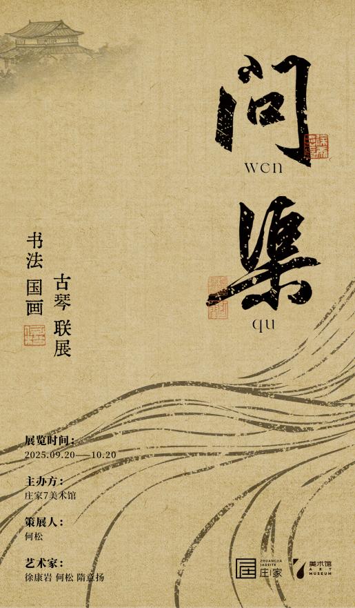 9月20日下午,《问渠》书画琴三联展于庄家7美术馆正式开幕。展览汇聚北京问渠书院徐康岩、何松、隋意扬三位艺术家的上百件代表作,涵盖书法、山水画与古琴三大门类,以东方古典语言展开一场跨越古今的美学对话。