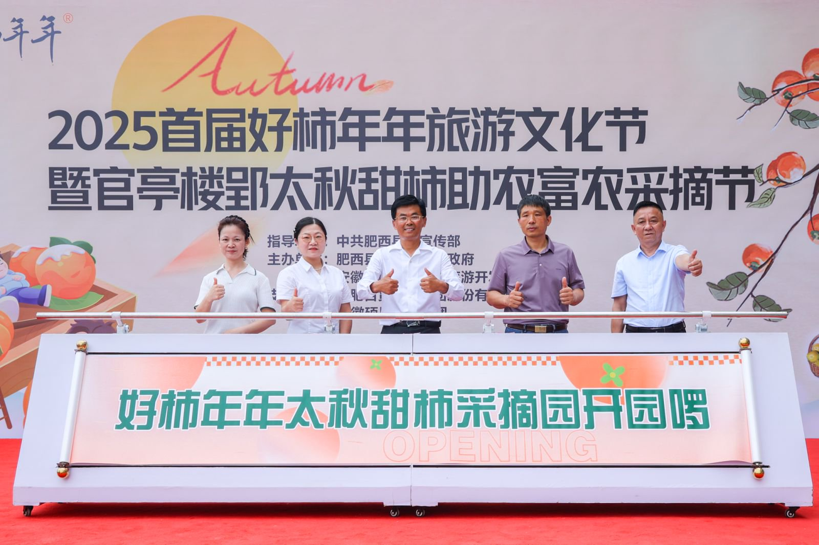 本次活动由中共肥西县委宣传部指导,肥西县官亭镇人民政府与安徽好柿年年文化旅游开发有限公司联合主办,合肥百货大楼集团有限公司、 扬子硒泉水、安徽硕果教育集团特别支持,以采摘为媒,欢度国庆喜迎中秋,串联文化+农业 +旅游多维体验,推动肥西好柿年年成为长三角高端农文旅生力军,促进新时代乡村振兴大业。