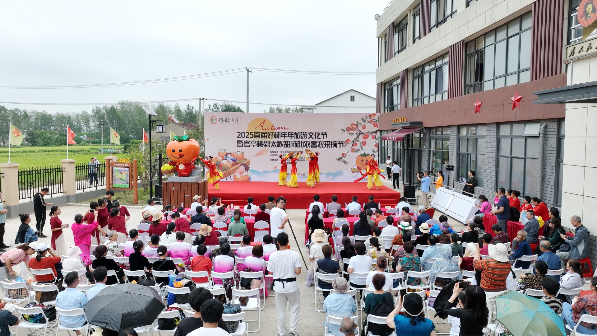 2025首届好柿年年旅游文化节暨官亭楼郢太秋甜柿助农富农采摘节在好柿年年300余亩的采摘基地,饱满金黄,静静地挂在枝头等待游客来采摘,开园仪式环节将开幕式带到了高潮。