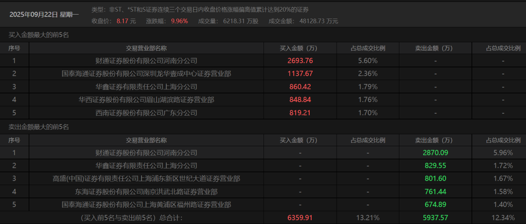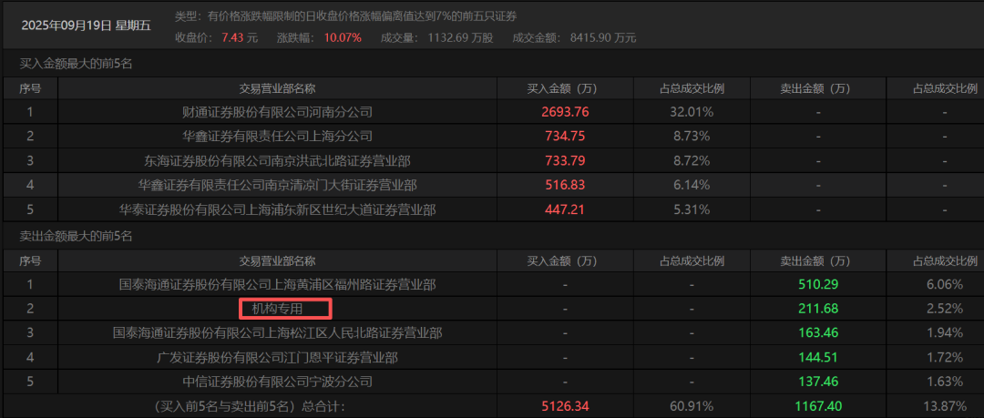 9月19日,鼎信通讯前五大买方均为券商分公司和营业部,但前五大卖方除了券商分公司和营业部,还包含机构专用账户;9月22日前五大买方与卖方均为券商分公司和营业部。
