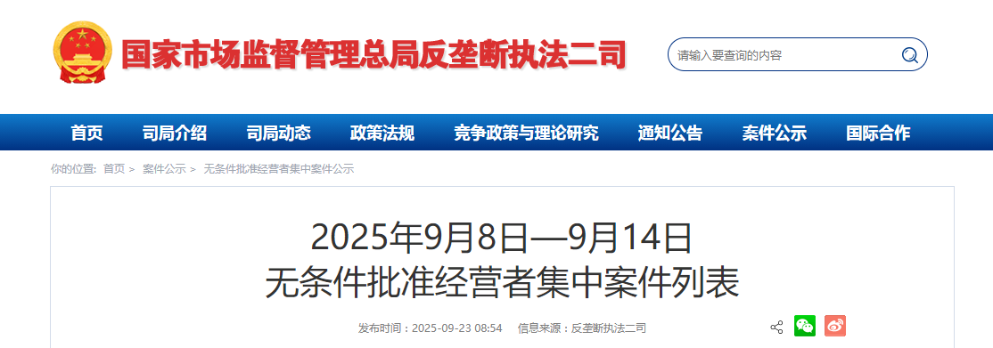 | 6 | 武汉长江国际贸易集团有限公司收购良品铺子股份有限公司股权案 | 武汉长江国际贸易集团有限公司,良品铺子股份有限公司 | 2025年9月10日 |