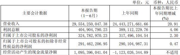 据公司2025年半年报,报告期内,公司实现营业收入295.54亿元,同比增长20.91%;归属于上市公司股东的净利润3.25亿元,同比增长2.30%;扣除非经常性损益后的净利润2.91亿元,同比增长0.47%;经营活动产生的现金流量净额10.95亿元。