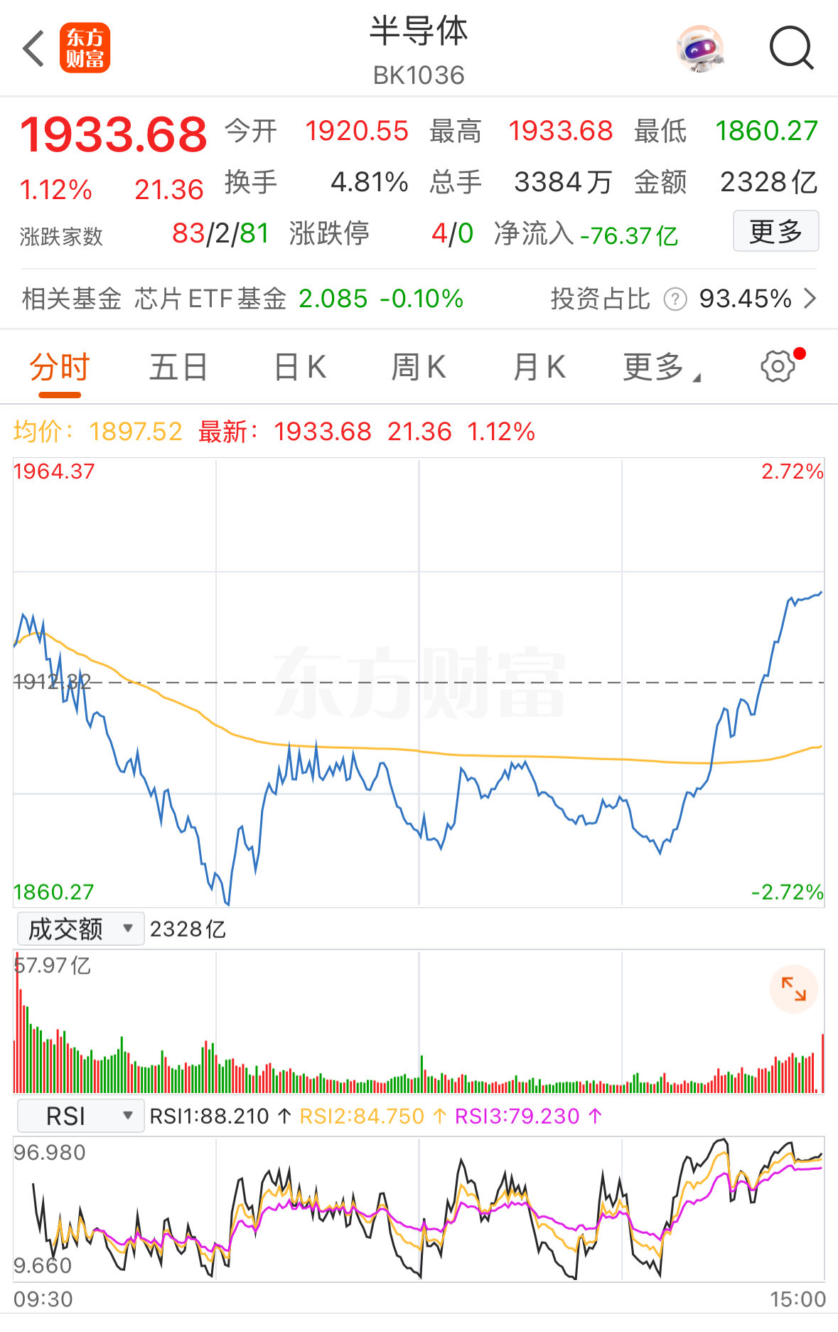 今日半导体板块上演了一场“探底回升”的戏码——早盘起持续下跌,最低跌至1860点,随后一直处于低位,未能有效回升。直至收盘前18分钟,终于触及“水平线”,再一鼓作气向上攀登,最终板块涨幅1.12%,收报1933.68点。板块内长川科技(维权)“20cm”涨停,德明利3连板续创新高。此外,航运板块全天强势,南京港、宁波海运涨停。