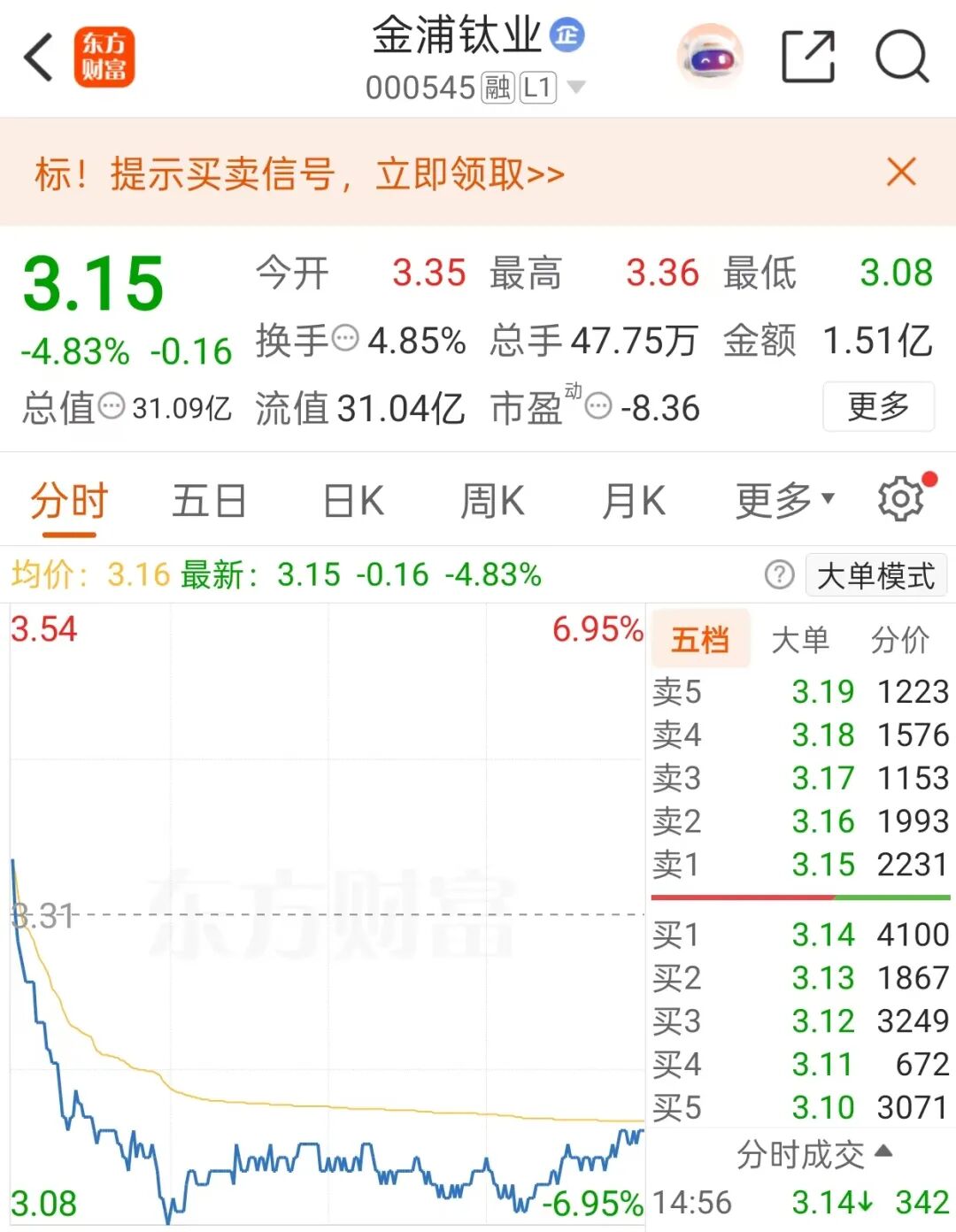 9月23日,金浦钛业报收于3.15元/股,跌幅达4.83%,总市值为31.09亿元。Choice数据显示,截至8月8日,公司股东人数为71555户。
