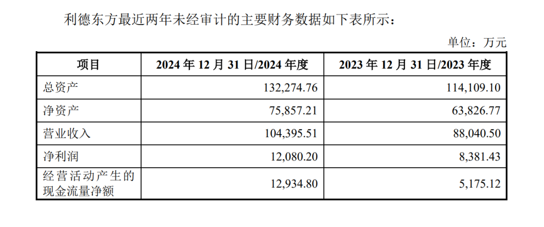 与金浦钛业的业绩颓势不同,利德东方近年来业绩强劲增长。交易预案显示,2023年至2024年,利德东方分别实现营收8.80亿元、10.44亿元,净利润分别为8381.43万元、1.21亿元。
