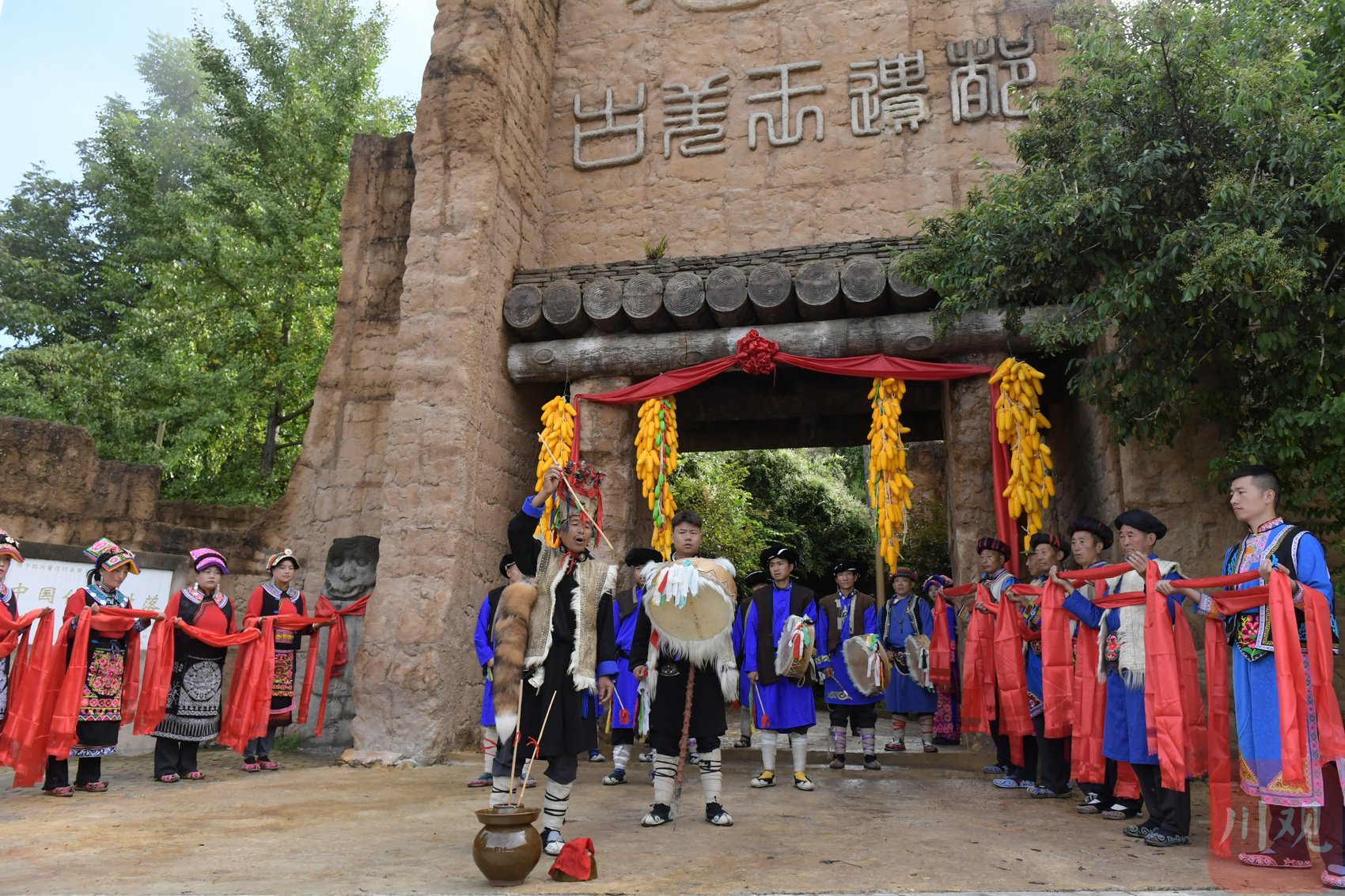 2025年9月23日,在四川省阿坝州汶川县威州镇萝卜寨村,当地羌族群众感恩天地赐予村寨祥和硕果累累,祈福来年风调雨顺。