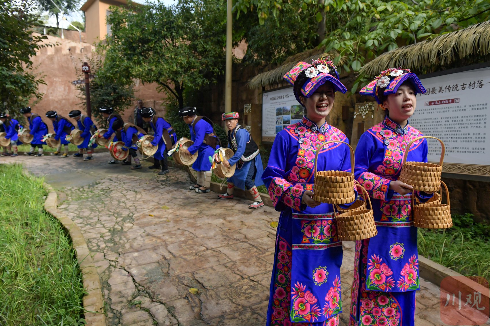 2025年9月23日,在四川省阿坝州汶川县威州镇萝卜寨村,当地羌族群众表演节目庆丰收。