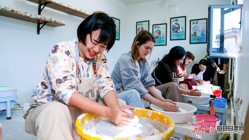 探访的最后一站,博主们来到中川?青云驿——兰州新区史喇口乡村旅游区。红木廊道蜿蜒延伸,博主们闲庭信步,在这份难得的“慢时光”里感受乡村的静谧与惬意。在寻野露营地,他们穿梭于绚烂花海,亲手采摘葵花,欢声笑语洒满田间;在陶艺制作工坊,拉坯机飞速转动,博主们手脚并用,捏塑出一个个形状各异的陶器,脸上满是亲手创作的欢喜与成就感。